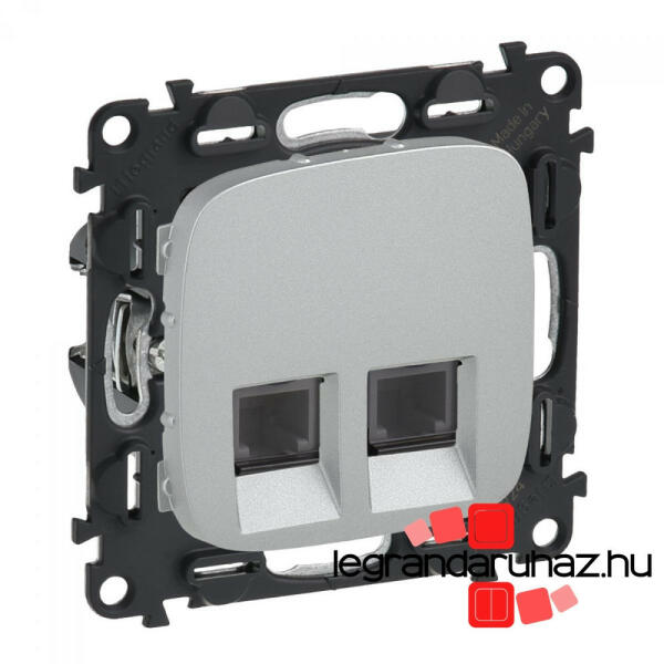 Céliane - dupla RJ45 (számítógép csatlakozó) aljzat A csomag tartalma: Céliane csavarozható rögzítőperem Céliane mechanizmus Céliane burkolat A termékkép az összeszerelt szerelvényt ábrázolja, a termékeket részekre csomagolva külön cikkszámon számlázzuk és szállítjuk (rögzítőperem + szerelvény + burkolat) Dupla számítógép csatlakozó aljzat LCS2 forgatókaros m