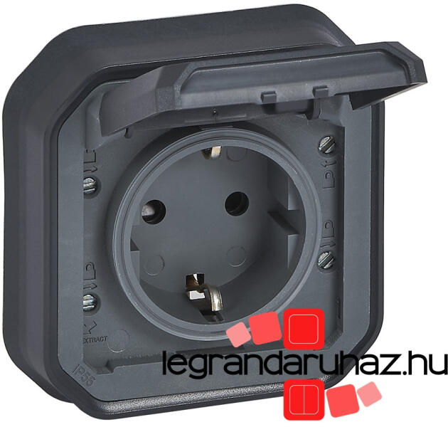 Plexo 55 - konnektor burkolattal Plexo 55 mechanizmus burkolattal és kerettel Összeszerelt változat Földelt csatlakozóaljzat 16 A - 250 V~ Csavaros vezetékbekötés 2P+F csatlakozóaljzat biztonsági zsaluval Süllyesztett K örmök segítségével rögzíthetők (Cikkszám: 069796L és 069797L), (nem tartozék) Plexo 55 antracit Csatlakozás: Csavaros vezetékbekötés Kábel csupaszítási