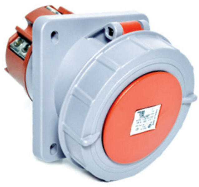 Beépíthető dugalj - Anyaga: műanyag - Méret: 114 x 114 mm - Beépítési méret: 90 x 90 mm - Névleges áram: 125A - Pólusok száma: 4P - (3P+E+p / 6h) - Névleges feszültség: 380V - IP védettség: IP67 - Típus: hagyományos csavaros bekötésű, tekerős csapfedeles, ferde beépíthető dugalj