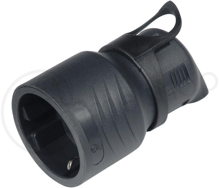 Csatlakozó oldalsó kivezetésű lengő dugalj, 16A 250V ~, fekete Csatlakozó oldalsó kivezetésű lengő dugalj, 16A 250V ~, fekete