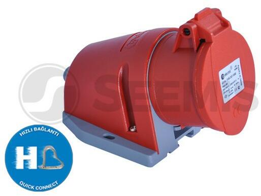 Felületre rögzíthető dugalj - Anyaga: műanyag - Méret: 121 x 88 mm - Névleges áram: 16A - Pólusok száma: 4P - (3P+E / 6h) - Névleges feszültség: 380V - IP védettség: IP44 - Típus: rugós, gyors bekötésű, csapfedeles felületre építhető dugalj