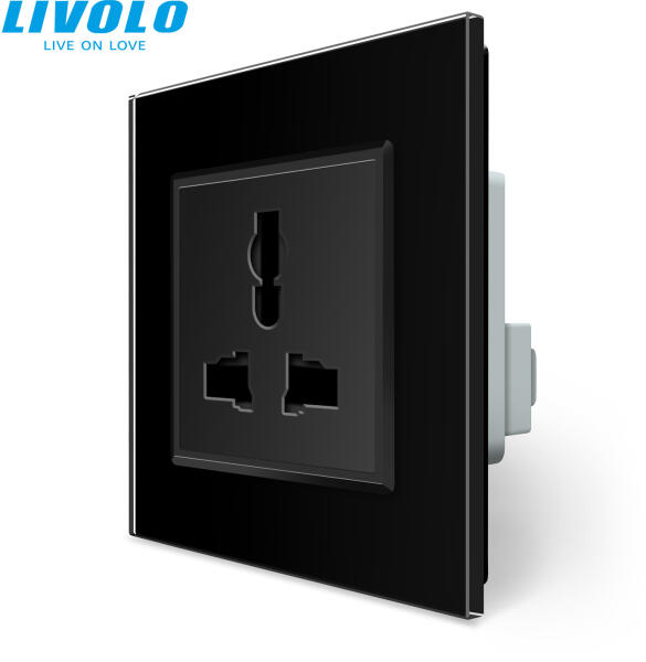Csatlakozó oldalsó kivezetésű lengő dugalj, 16A 250V ~, fekete