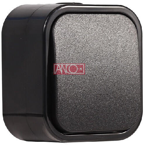 321665 - falon kívüli - fekete csapófedéllel - 16 A; 250 V; 60Hz - IP54: kültér; por ellen védett (nem károsító mértékű behatolás megengedett); fröccsenő víz ellen védett minden irányból - csavaros bekötésű - méretek: 66 x 77 x 50 mm - fekete
