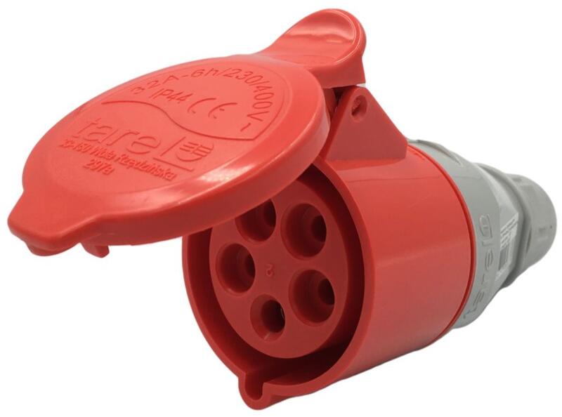 Kábelcsatlakozó 32A/400V/5P IP44 137 TAREL Feszültség: 400V Áram: 32A Pólusok száma: 5 Típus: 3P+N+Z Vezeték keresztmetszete: 2,5 - 6 mm Szín: vörös-szürke Fedettség: IP44