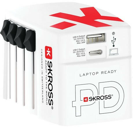 Termék részletekSkross UTAZÓ ADAPTER 1.302332 A World USB töltővel, az AC45PD-vel egyszerre két USB eszközt tölthetsz fel több mint 220 úti célban világszerte, egyedi csúsztatható dugaszmechanizmusának köszönhetően. 1x USB Type C és 1x USB Type A kimenettel rendelkezik, így rendkívül erős és ideális mindenféle USB-eszköz, például laptop, okostelefon, tablet, hordozható töltő, fényk