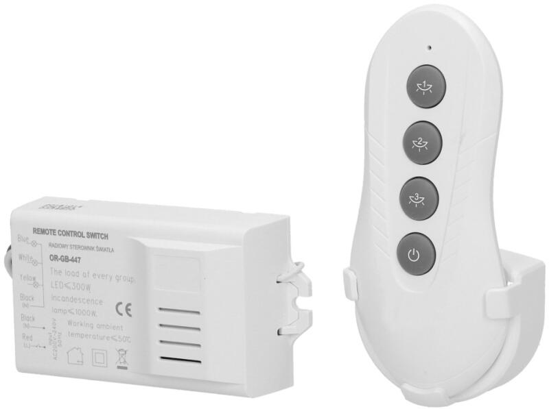321531 - 3 csatornás vezérlő elektromos eszközök egyidejű be- és kikapcsolására - 1 távirányító +2 AAA mikroceruza elem - hálózati feszültség 220-240 V - csatornánkénti terhelhetőség: halogén izzónál 1000W, led forrásnál 300W - védettség: IP20 - érzékelési távolság 30m (nyílt terepen) - vevőegység mérete: 50 x 115 x 20 mm - távirányító mérete: 52 x 103 x 3