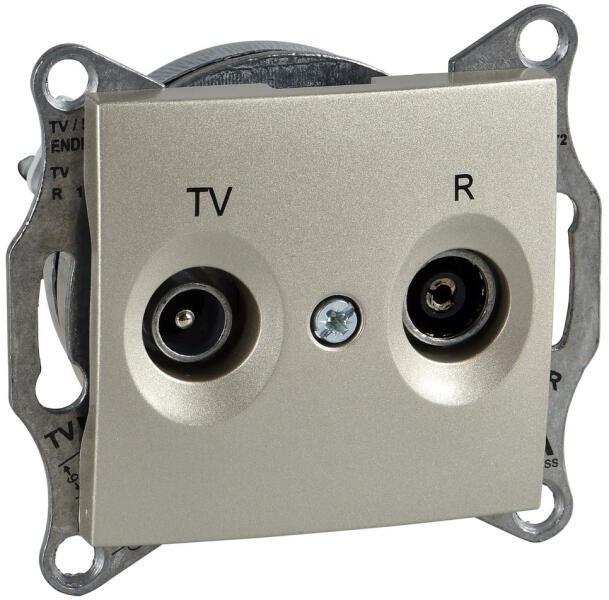 SEDNA TV/R aljzat, átmenő, 8 dB, titánium, keret nélkül TV dugós csatlakozó típusa=1 IEC 9,52 mm-es dugó FM dugós csatlakozó típusa= Anya IEC 1 Kimenetek száma: 2 Csillapítás = 8 dB esetén TV jel esetén 5…862 MHz frekvencia 10 dB esetén Rádió jel esetén 88…125 MHz frekvencia Védettség:IP20 Csatlakozások pontjai: csavaros sorkapocs A látható műanyagalkatrészek anyaga