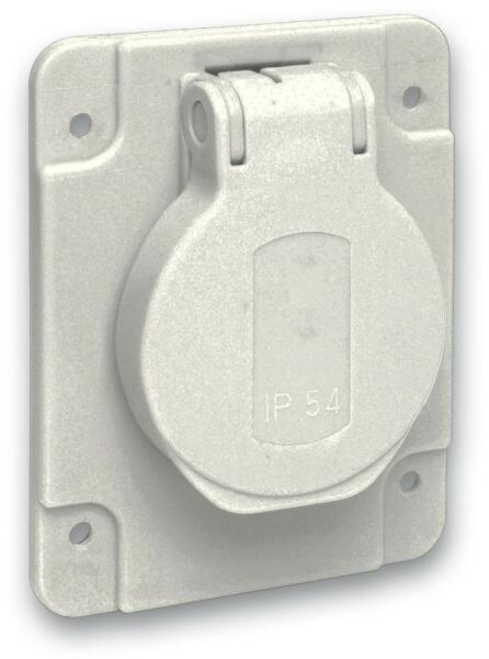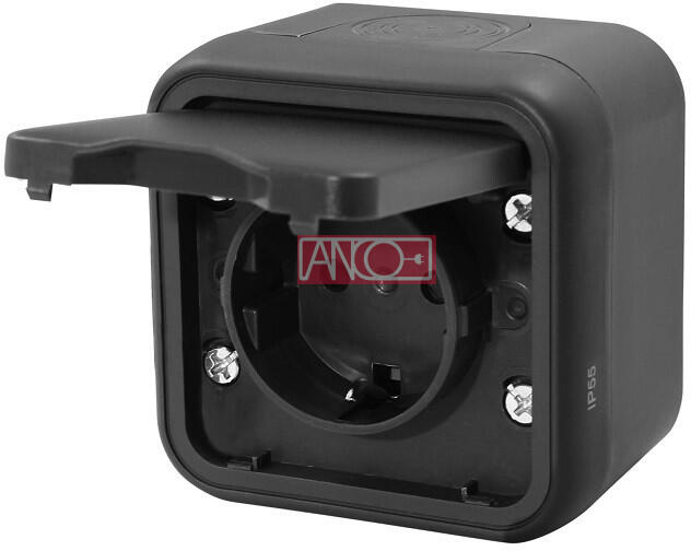 043111 - falon kívüli - 16 A; 250 V; 60Hz - IP55: kültéri; apró méretű szilárd tárgyak ellen védett (>1 mm); Kisnyomású vízsugár ellen védett minden irányból - szorítórugós bekötés - a ház tetején, alján és hátulján gumírozott kábelbevezetések találhatók - antracit