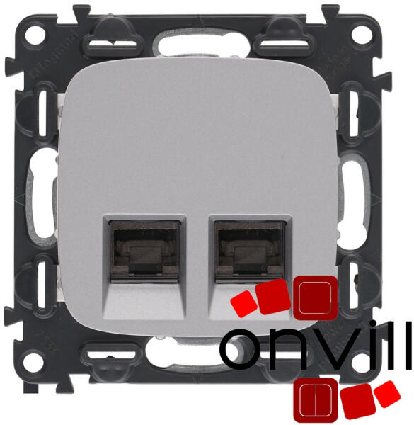 Céliane - dupla RJ45 (számítógép csatlakozó) aljzat A csomag tartalma: Céliane körmös rögzítőperem Céliane mechanizmus Céliane burkolat A termékkép az összeszerelt szerelvényt ábrázolja, a termékeket részekre csomagolva külön cikkszámon számlázzuk és szállítjuk (rögzítőperem + szerelvény + burkolat) Dupla számítógép csatlakozó aljzat LCS2 forgatókaros mechan