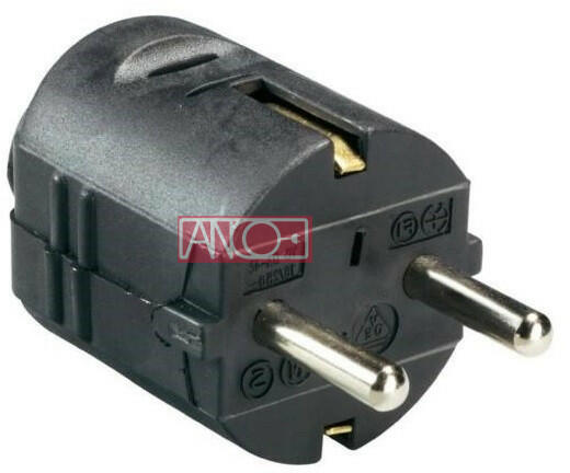 Csatlakozó oldalsó kivezetésű földelt dugvilla, 16A 250V ~, fekete