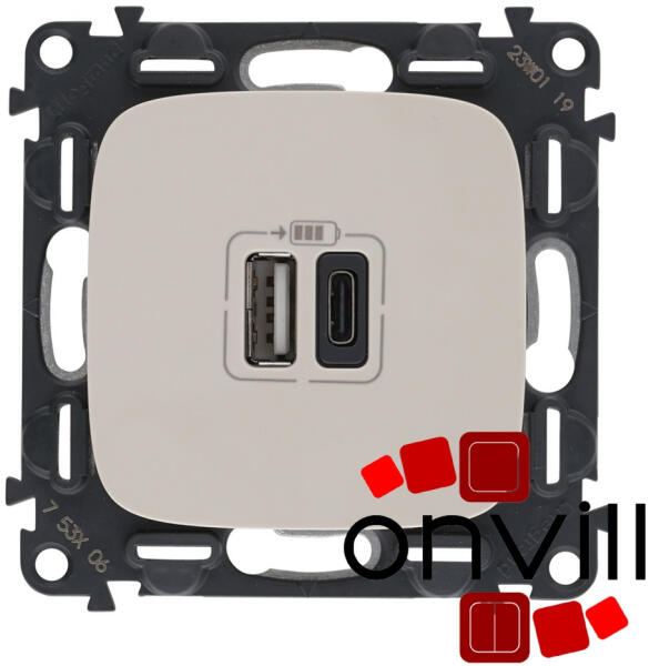 Valena Allure - USB töltőaljzat burkolattal Valena In'Matic szerelvény műanyag borítású fém süllyesztőperemmel Burkolattal ellátva IP 2X védelem Festékvédő burkolattal ellátva Egyedi csomagolás a funkciók védelméért Kettős USB C típusú + USB A típusú töltőaljzat - 5 V - 3A - 15W Beépített tápegység 5 V – 3 A – 15 W Mobiltelefonok, tabletek, okostelefonok, MP3 é