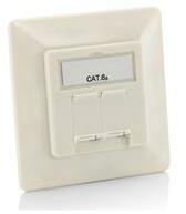 UTP CAT5 fali aljzat (dupla). Jellemzők: - 8 Pólusú aranyozott csatlakozó - Falon kívüli kivitel - Színe: fehér - Rögzítés: K étoldalú ragasztóval, Csavarral ( Mindkettő tartozék )