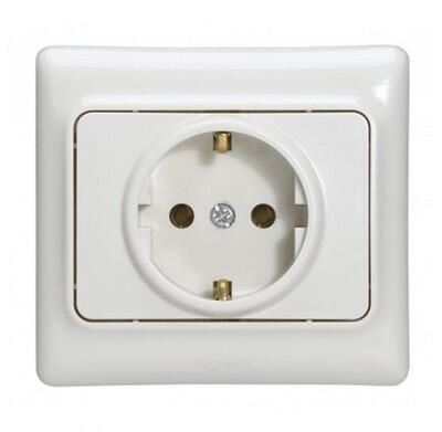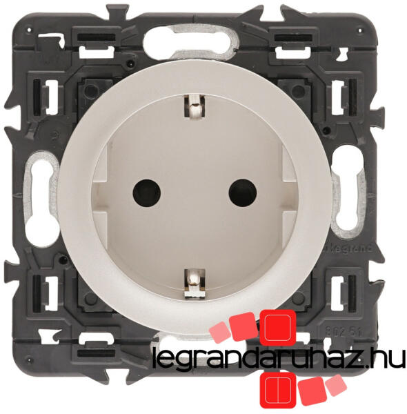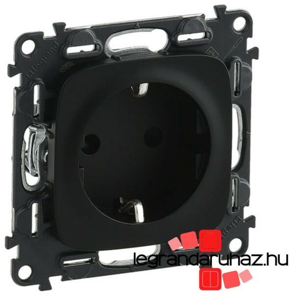 Céliane - 2P+F csatlakozóaljzat (konnektor) A csomag tartalma: Céliane körmös rögzítőperem Céliane mechanizmus Céliane burkolat A termékkép az összeszerelt szerelvényt ábrázolja, a termékeket részekre csomagolva külön cikkszámon számlázzuk és szállítjuk (rögzítőperem + szerelvény + burkolat) Földelt csatlakozóaljzat 16 A – 250 V Csavaros vezetékbekötéssel Bizto