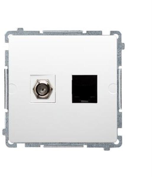 Aljzat SAT "F" + RJ45 Simon alapmodul fehér Specifikáció: Sorozat: Simon Basic Termék neve: Aljzat 1 x SAT "F" + RJ45 kat. 6 Színe: Színe: Fehér Típus A csatlakozók típusa: "F" + rovátkolt kulcscsont IP-védelem: IP20 Egyedi felszereléshez Anyag típusa: Anyag típusa: 1: Halogénmentes műanyag, PC Felületkezelés: fényes Szerelési mód: süllyesztett beépítés Rögzítési mód: