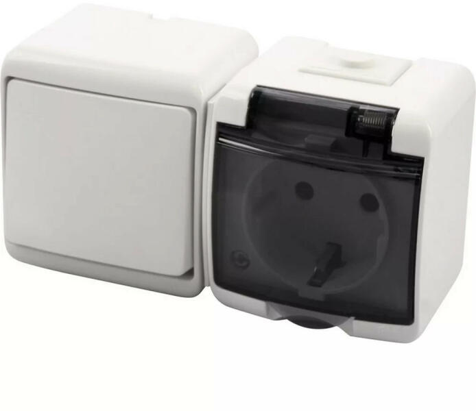 komplett, falon kívüli, horizontális, 10A/16A, 250V, 60Hz, IP54, kültéri, fehér