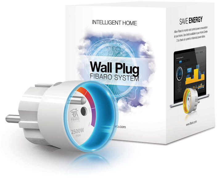 Fibaro Wall plug okos konnektor fogyasztásméréssel, max 2,5 kW teljesítményű készülékek működésének szabályozására használható.