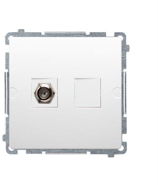 Antennacsatlakozó "F" típusú szimpla (modul), fehér Specifikáció: Sorozat: Simon Basic Termék neve: "F" típusú szimpla antenna aljzat Színe: 1,5 mm: Fehér Típus A csatlakozók típusa: "F" IP-védelem: IP20 Egyedi felszereléshez Anyag típusa: Anyag típusa: 1: Halogénmentes műanyag, PC Felületkezelés: fényes Szerelési mód: süllyesztett beépítés Rögzítési mód: Húzórug