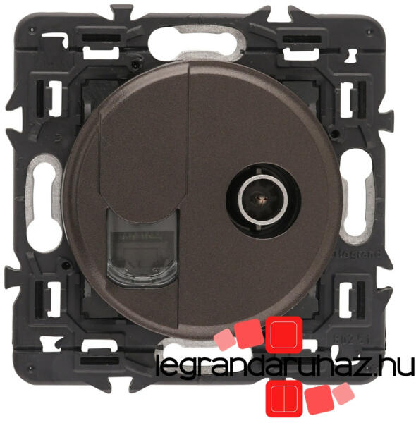 Céliane - RJ45 + TV (számítógép + TV csatlakozó) aljzat A csomag tartalma: Céliane csavarozható rögzítőperem Céliane mechanizmus Céliane burkolat A termékkép az összeszerelt szerelvényt ábrázolja, a termékeket részekre csomagolva külön cikkszámon számlázzuk és szállítjuk (rögzítőperem + szerelvény + burkolat) TV csatlakozóaljzat + RJ 45 Cat. 6 UTP aljzat TV: 0-240