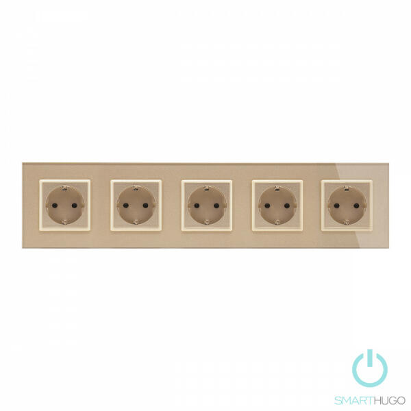 Stílusos otthonod része lehet a Smarthugo Ötös Sorolt Arany Üvegkeretes Konnektor, melynek öt darab sorolt konnektorja tökéletes megoldást nyújt az igényeidnek. Az elegáns megjelenés és a minőségi kidolgozás mellett a konnektorok földelt kialakításúak, és gyermekvédelemmel is ellátottak, így biztonságosan használhatod őket. A modern és szemet gyönyörködtető üvegke