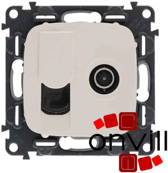 Valena Allure - TV + számítógép csatakozó burkolattal Valena In'Matic szerelvény műanyag borítású fém süllyesztőperemmel Valena Allure kerettel szerelhető fel Burkolattal Festékv édő burkolattal ellátva A termékkép az összeszerelt szerelvényt ábrázolja, a termékeket részekre csomagolva külön cikkszámon számlázzuk és szállítjuk (In'Matic szerelvény + burkolat) TV