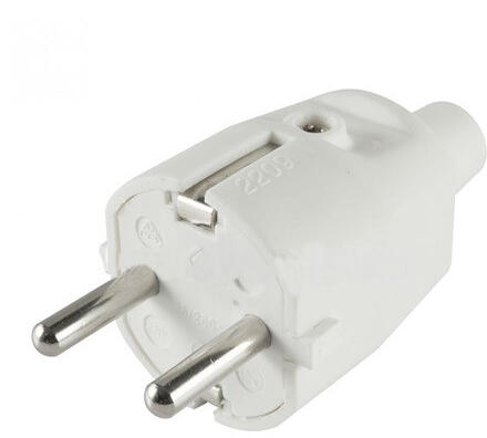 Somogyi NED 1/WH földelt villásdugó Tulajdonságok: 2 pólusú, egyfázisú 250 V~ / 16 A/3500 W Oldalsó kábelkivezetés