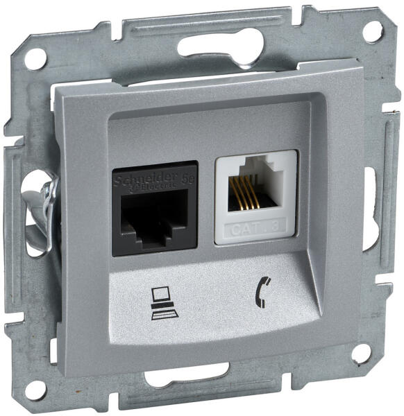 Fő jellemzők TermékcsaládSedna Termék vagy komponens típusaTelefon + adatcsatlakozó Eszköz bemutatásaKeret nélkül Telefonaljzat típusRJ11 Adatcsatlakozó típusaRJ45 category 6 UTP Burkolat színeAlumínium Kiegészí tő jellemzők KábelmerevségMere v Csatlakozás típusaIDC : RJ45Csavaros bekötés : RJ11 AnyagTermoplasztikus ABS-UV stabilizálódott Felületkidolgozás Selymes Ké