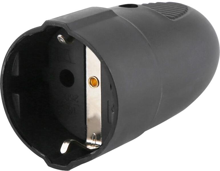A védőérintkezős lengőaljzat ónozott vörösréz érintkezőkből és egy műanyag házból áll. A csatlakozó névleges feszültsége 230 V, névleges áramerőssége 10 A - 16 A. Megtörés elleni védelemmel ellátott egyenes kábelbevezetéssel is rendelkezik. A csatlakozó biztonságos csatlakozórendszerként használható. A dugónak két földelő érintkezője van.