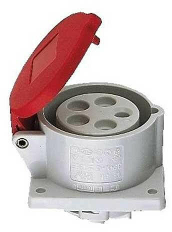 Max. load 16 A Voltage 400 V~ Poles 5P IP grade IP44 Ipari rögzíthető dugalj IEC 309 16A 400V ~ 4P IP44
