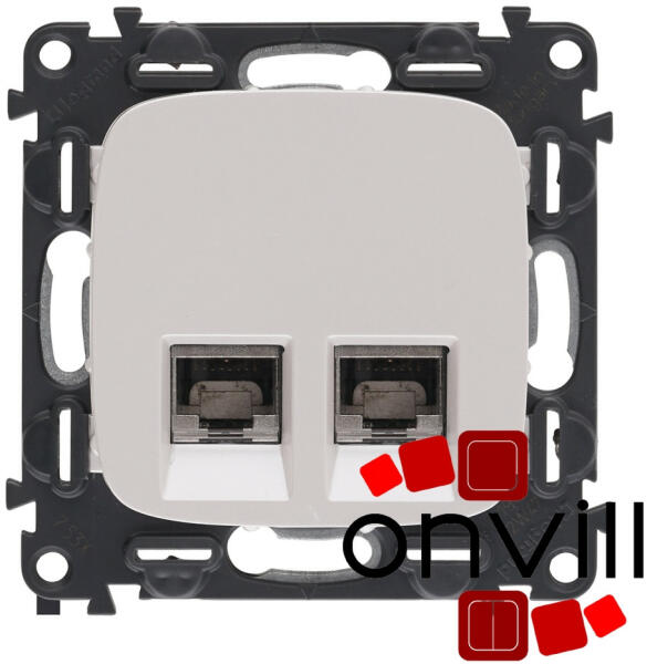 Fehér és krém színben RJ45-2x8 pólusú Ø65mm-es dobozba szerelhető IEC-60603-7 szabvány szerint Keret nélkül