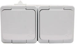 Anco 321351 Junior falon kívüli csapófedéllel IP44 fehér 2-es földelt dugaszolóaljzat - falon kívüli - fehér csapófedéllel - vízszintes - 16 A; 250 V; 60Hz - IP44: kültéri; apró méretű szilárd tárgyak ellen védett (>1 mm); fröccsenő víz ellen védett minden irányból - csavaros bekötésű - méretek: 125 x 65 x 44 mm - fehér