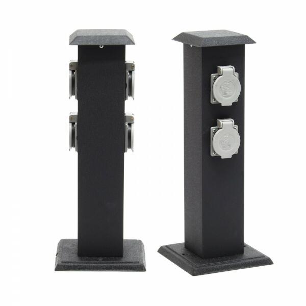 Kerti elosztó Méretek: 15,5x15,5x40,5 cm Bemeneti feszültség: 230V - max. 16A Energiafogyasztás: 3680 W Anyag: acél Védelmi osztály: IP 44 További információk:Acél kerti konnektor Időjárásállóságának köszönhetően ez a kültéri használatra szánt elosztó ideális megoldás a kert legeldugottabb zugainak állandó áramellátására. Vékony, helytakarékos kialakításának