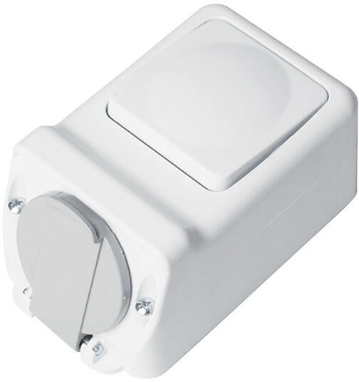 Típus: Aljzat+Egy pólusú kapcsoló Szerelési módszer: Felületre Szerelt Névleges áram: 16 A IP44 Szín: Fehér