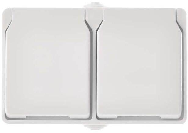 Fali dugalj kettős, fehér, IP44 Technikai paraméterek:szín: fehérkivitelezés: 2 t. vízállótípus: 250 V~/16 A max. csomagolás: 1 db, PE tasakfelszerelési mód: falradesign: FRENCHtermék: Kettős dugalj védőérintkezésekkel és fedéllel átkapcsolássalvédelem: IP44
