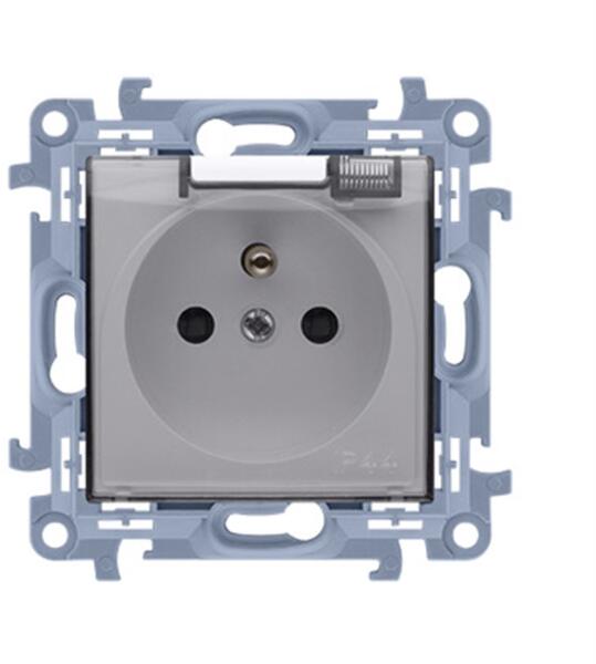 IP44-es földelésű aljzat pajzsokkal és tömítéssel (modul) 16A, 250V, átlátszó fedéllel, csavaros csatlakozókkal, fehér Specifikáció: Sorozat: 1: Simon 10 Termék neve: IP 44-es földelő aljzat Színe: 1,5 mm: Fehér/átlátszó Típus: modul Maximális áram: 16 A Feszültség: 250 V AC Kimeneti csatlakozók típusa Fedél színe: fehér IP-védelem: IP44 Gyermekvédelem: Igen Mate