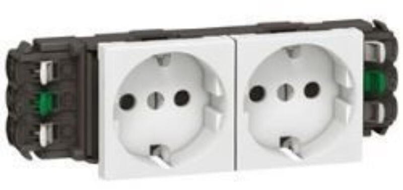 Program Mosaic mechanizmus földelt csatlakozóaljzatok, speciális kilökőkaros csatlakozóaljzat A megadott színű burkolattal szállítva rögzítőperem nélkül Program Mosaic 2x2P+F csatlakozóaljat S llyesztődobozba, kiemelő dobozba, padlódobozba, energiaoszlopba, asztali kábelrendezőbe és kábelcsatornába szerelhető 45°-os kivezetéssel IK 07 Rugós vezetékbekötéssel Jelzőf