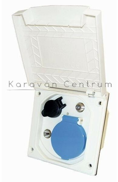 Elektromos külső csatlakozóaljzat fedéllel. Található benne 1-1 db 230 V-os és 12 V-os aljzat, továbbá 1 db TV/SAT csatlakozó Szín: fehér