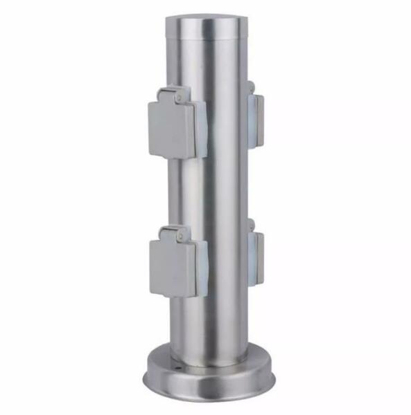 Kültéri aljzatoszlop. Tartalmaz 4 aljzatot. Az aljzatok fölött elhelyezett patentok vízszigetelést biztosítanak a bemeneteknek, kiküszöbölve a rövidzárlatok kockázatát. Kiváló minőségű rozsdamentes acélból készült. Aljzattípus: F (IP44, 220-240V, 16A). Az elektromos aljzatokkal kapcsolatos további információkért kattintson IDE.