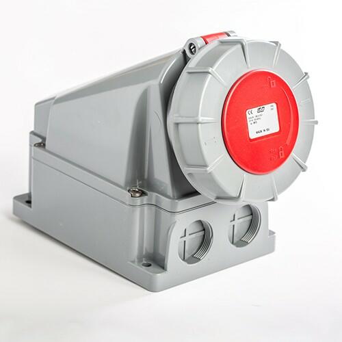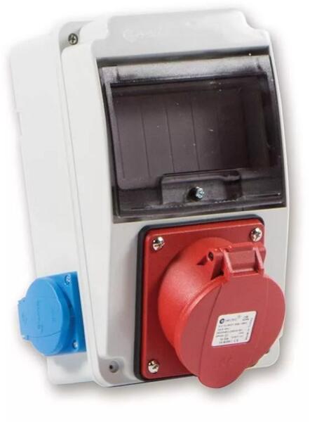 Szerelt ipari doboz 2db 2P+F háztartási dugalj 1db 5P 16A ipari dugalj Mérete:130x220mm Modul száma:6 IP44