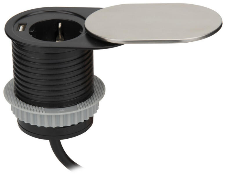 VersaHit dual rejtett, süllyesztett elosztó IP54 védelemmel. Jó minőségű anyagból készült és 1db földelt dugaljt és 2db 5V-os USB töltőt kapott. A szögletes alakú rejtett konnektort, konyhai munkalapba vagy bármilyen asztallapba be tudjuk építeni ami legalább 15 mm vastagságú . A beépítéshez egy 108 x 108 mm-es kivágott lyukra van szükségünk a pult alatt pedig 40mm he