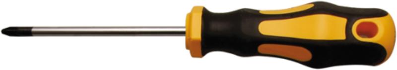 Hosszú csavarhúzó keresztfejű Phillips® csavarokhoz Új kétkomponensű markolat kemény polipropilén maggal. Új, gurulás ellen biztosított markolat Lágy hőkezelt gumi bevonat A krómozatlan fejnek köszönhetően tökéletes fogás a csavaron. A foszfátréteg pedig megvédi az oxidációtól.