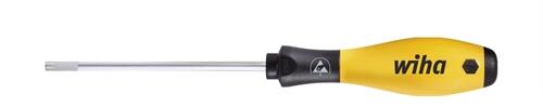 Csavarhúzó, TORX® ESD Jellemzők: Ergonomikus Wiha SoftFinish® többkomponensű markolat elgurulás védelemmel · Jó minőségű, teljesen átedzett, mattra krómozott, króm-vanádium-molibdén acél pengével · Wiha ChromTop® penge heggyel · felületi feszültség 10 6 - 10 9 Ohm. Műszaki adatok: Alkalmazás: ESD · Anyag: Króm-vanádium-molibdén acél · Anyagjellemző: Matt, krómo