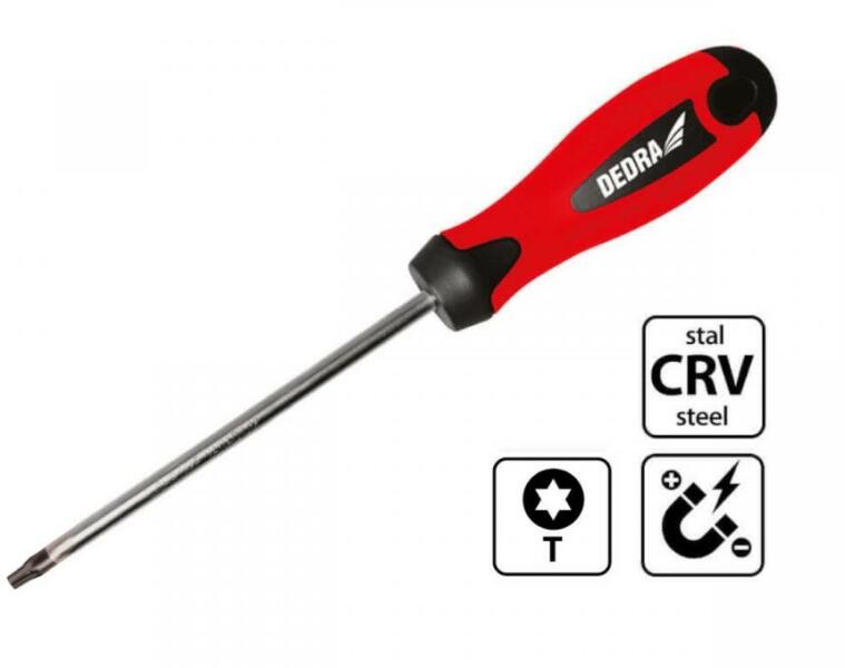 Cikkszám Súly (kg) Csillag végződés TX Mágnes Króm-vanádium acélból készült 06A0300,04T6x60IgenIgen06A0 320,05T8x80IgenIgen06A0340,07T10x80IgenI gen06A0350,07T15x100IgenIgen06A0360,07T2 0x100IgenIgen06A0370,1T25x100IgenIgen06A 0390,1T30x100IgenIgenTorx T25 x100 mm csavarhúzó. A penge krómötvözetű acélból készült, amely rendkívül tartós és korrózióálló. Ezenkívül a h