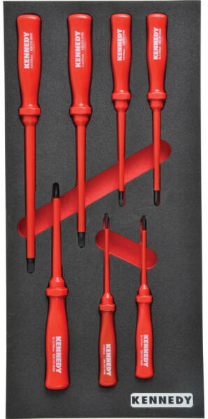 ‘Volt-tesztelt', hogy tökéletes biztonságot nyújtson elektromos berendezéseknél 1000V-ig váltóáram és 1500V-ig egyenáram esetén. DIN7438 és DIN EN 60900 szerint gyártva. Készlet összetétele: Kereszthornyú - 2.5 x 85, 4.0 x 100, 5.5 x 125, 6.5 x 150 mm. Párhuzamos él - No. 0 x 75, No. 1 x 100, No. 2 x 100 mm. Súly: 495 g Habszivacs betét mérete: 395 x 180 x 22 mmA következ