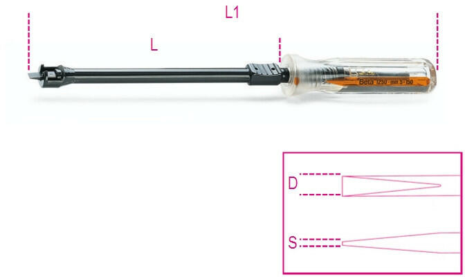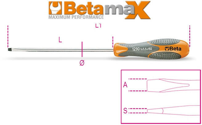 A KÉP CSAK ILLUSZTRÁCIÓ! JELLEMZŐK: BetaMax csavarhúzó TECHNIKAI SPECIFIKÁCIÓK: SxAxL mm0,8x4x150 L1 mm246 Ø mm4,0