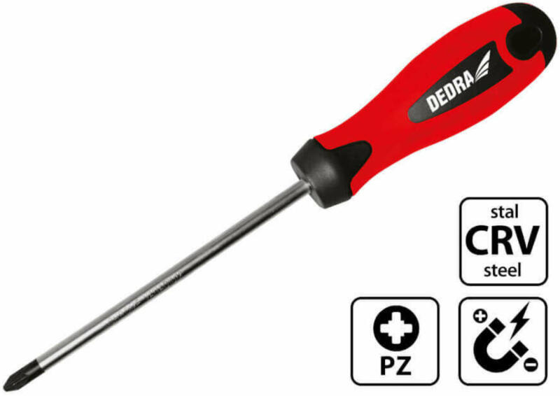 Cikkszám Súly (kg) Kereszt végződés PZ Króm-vanádium acélból készült Mágnes 06A0200,05PZ0x75IgenIg en06A0230,07PZ1x100IgenIgen06A0250,1PZ2x 100IgenIgen06A0260,11PZ2x150IgenIgen06A0 270,16PZ3x150IgenIgenPZ2 x150 mm keresztfejű csavarhúzó. A penge krómötvözetű acélból készült, amely rendkívül korrózióálló. Ezenkívül a hegye mágneses, ami növeli a pontosságot és meg