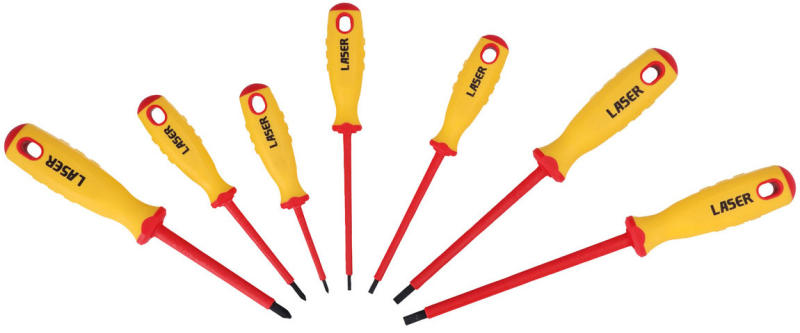 Szigetelt, 1000 V-ig használható csavarhúzó készlet. Ergonomikus markolat PP - TPR anyagból a kényelmes fogásért. Használható: 1500 V DC váltakozó és 1000 V AC egyenáramnál. VDE tanúsítvánnyal. Méretek: - lapos: 3 mm x 100 mm, 4 mm x 100 mm, 5.5 mm x 125 mm, 6.5 mm x 150 mm - kereszt: PH0 x 60 mm, PH1 x 80 mm, PH2 x 100 mm Súly: 500 g Szín: piros-sárga Anyag: acél + műanya