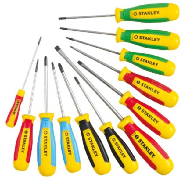 STANLEY 12 RÉSZES MAGNUM CSAVARHÚZÓ KÉSZLET A Stanley Magnum csavarhúzó 25% -kal nagyob, mint az eredeti Magnum csavarhúzó, hogy jobb tapadást és nagyobb nyomatékot biztosítson. Ipari minőségű oxidált hegyek, a hosszabb élettartam érdekében. Az azonosítást megkönnyítendő színkódolt TPR fogantyú. Gumibetétes a biztonságosabb fogás érdekében. Az Egyesült Királyságb