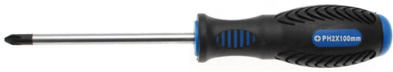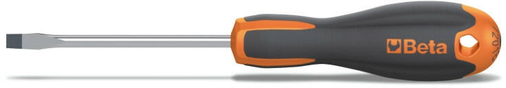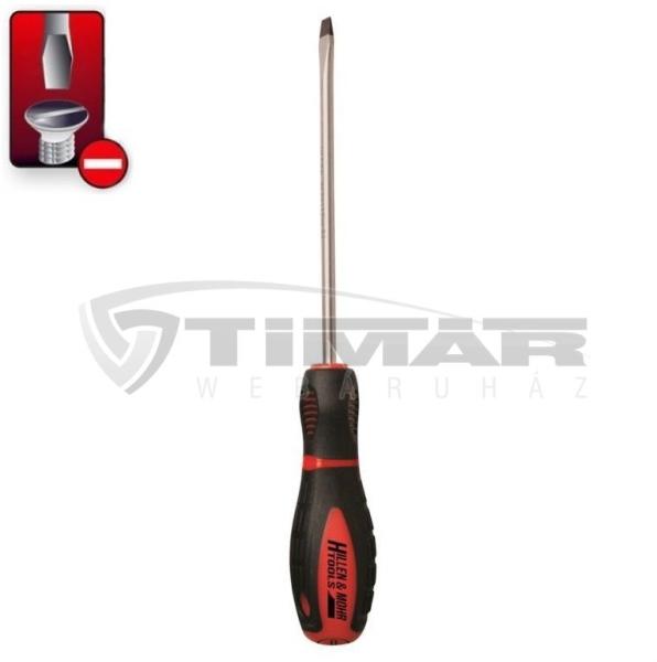Csavarhúzó hasítottfejű csavarokhoz, krómozott, fekete fej Új kétkomponensű markolat kemény polipropilén maggal. Új, gurulás ellen biztosított markolat. Lágy hőkezelt gumi bevonat A krómozatlan fejnek köszönhetően tökéletes fogás a csavaron. A foszfátréteg pedig megvédi az oxidációtól.