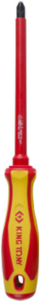 King Tony szigetelt 1000V csavarhúzó PH 0x75mm A szigetelt VDE csavarhúzó képes kezelni akár 1000V-os feszültséget is és megbízhatóan csavarozhatunk akár nagyobb elektromos rendszerekben is. Ez rendkívül fontos, mert segít elkerülni a kockázatot az elektromos ütés vagy más sérülések szempontjából. A 1000V-os csavarhúzókat szigetelt markolattal gyártják, ami további v