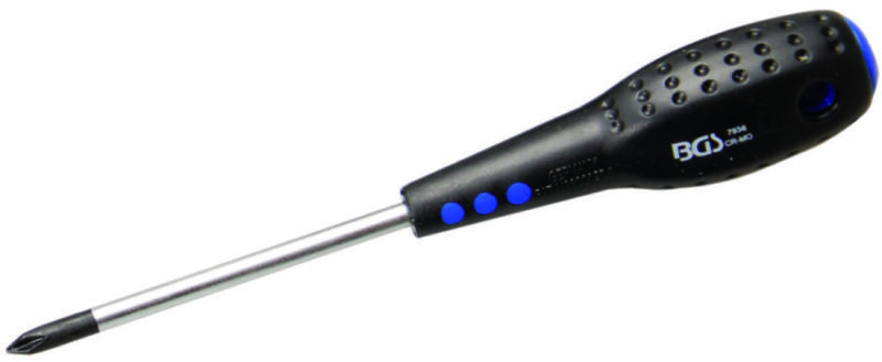 Csavarhúzó keresztfejű Pozidriv®-Supadriv® csavarokhoz, krómozott, fekete fej Új kétkomponensű markolat kemény polipropilén maggal. Új, gurulás ellen biztosított markolat Lágy hőkezelt gumi bevonat A krómozatlan fejnek köszönhetően tökéletes fogás a csavaron. A foszfátréteg pedig megvédi az oxidációtól.